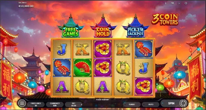 The 3 Coin Towers slot game launched by Endorphina on February 7 2026 establishes its uniqueness in a market filled with Asian-themed slots. The visual design of the building combines elements from traditional East Asian temple architecture which include lacquered red columns and golden coin towers and lanterns that emit light against a deep green backdrop. The soundtrack combines ceremonial percussion music with delicate string melodies which create building suspense during each spin while maintaining its freshness. If you have played Book of Ganesha Free Demo on Gamblerid, you will recognize that same balance of atmosphere and mechanical depth - here pushed further with a feature set that goes well beyond surface aesthetics.
