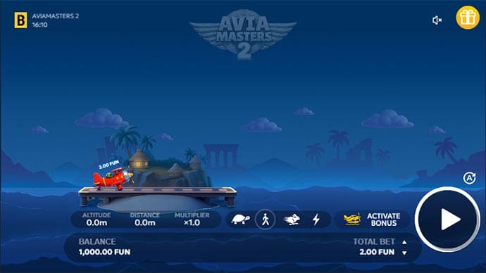 If you are learning how to play Aviamasters 2, the Aviamasters 2 game uses a fully automated system where the plane collects multipliers and prizes during flight. The core loop is straightforward: set a bet, tap Spin, watch the plane fly its randomized path, and collect your Counter Balance when it lands. The Counter Balance - displayed above the aircraft - updates in real time as the plane hits multipliers (+1, +2, +5, +10 or x2, x3, x4, x5) or rockets that split it in two. Landing on an island applies the Counter Balance to your total balance. Landing in water means a lost round.
