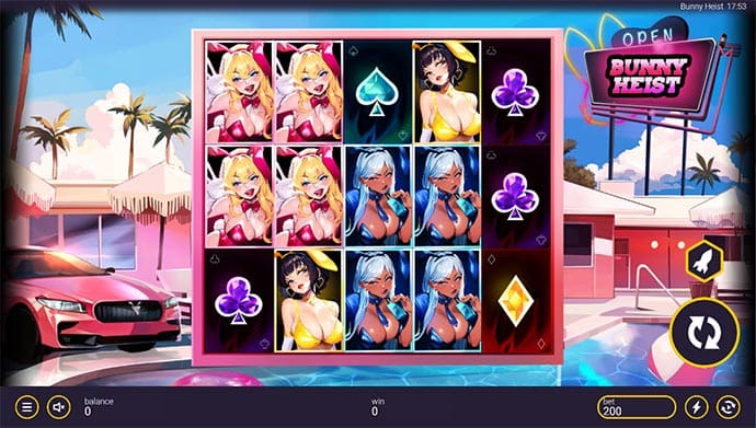 Bunny Heist provides players with an immersive experience which takes place in a stylish casino heist fantasy that revolves around three daring bunny characters who are prepared to engage in combat. Peter & Sons shows its distinctive visual style on a 5x3 grid which displays oversized bunny characters together with deep red and gold card suits and the high-pressure background music. The adult-themed design approach creates an intense visual experience which combines elements of heist thrillers with the seductive charm of burlesque entertainment.