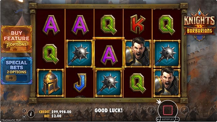 The Knights vs Barbarians demo is available without registration or deposit. Scroll to the top of this page and select the Play Demo button to load the game directly. Demo mode runs on identical mechanics to the real-money version - the same RTP ranges, the same scatter frequencies, and the same bonus features apply.