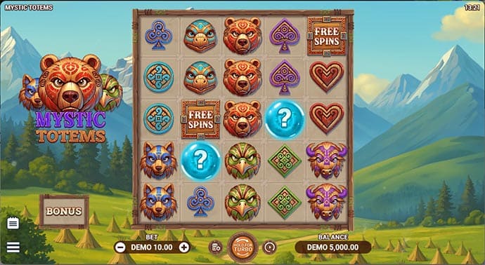 To play the Mystic Totems slot demo for free online, scroll to the demo embed at the top of this page and click Play Demo. No download required. The Mystic Totems free demo loads directly in browser on desktop and mobile. When ready to switch to real money, the link above the demo button connects to a licensed operator carrying this title.