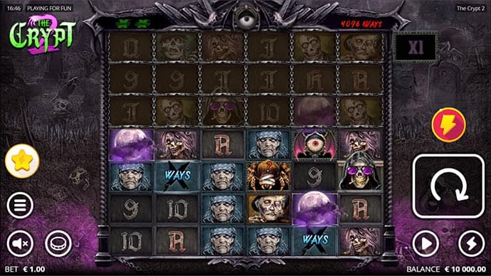 The Crypt 2 slot spreads its gameplay from its first reel to all its adjacent reels. The game uses a cascading reel system which allows winning symbols to explode and vanish from the screen while new symbols enter through the empty spaces. The system activates chain reactions which occurs during one spin because each cascade will produce Eye Collector and Spider symbols that increase the global multiplier.
