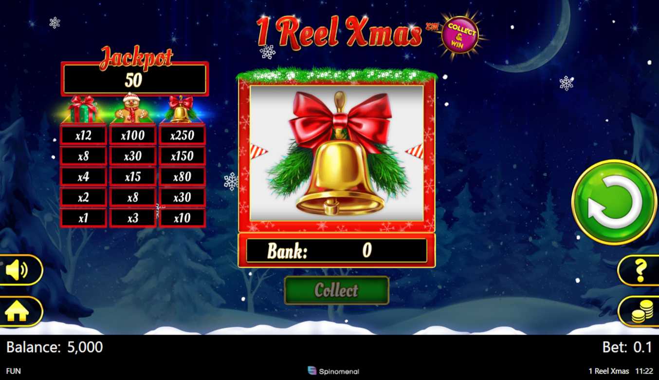 The RTP of 1 Reel Xmas is 96.2%, 93.9%, 91.54%, 88.76%. Greater return to player, the better your odds are.