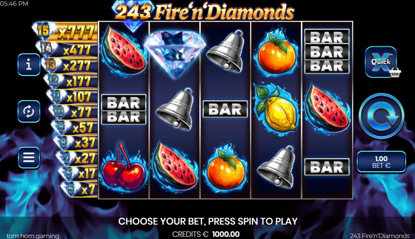 243 Fire'n'Diamonds by Tom Horn Gaming Slot Features