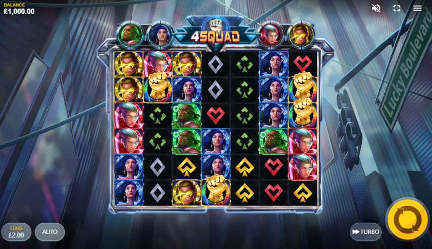 The RTP of 4Squad is 95.72%, 94.74%, 93.66%, 92.77%, 91.65%, 90.69%. The higher the RTP, the more potential you have for returns.