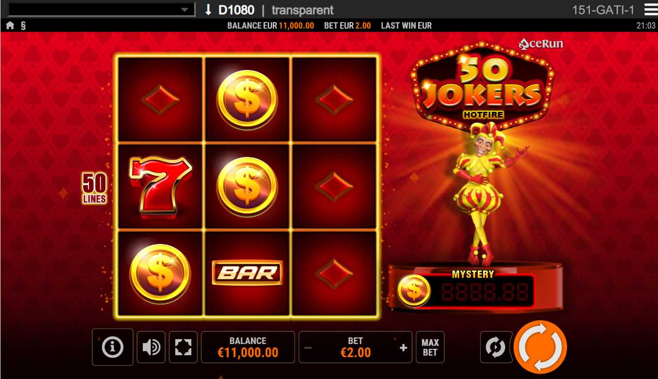 The RTP of 50 Jokers Hotfire is 94%, 90.5%. Greater return to player, the more favorable it is for players.