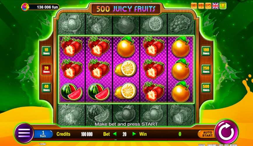 Top-rated place to play 500 Juicy Fruits for real money is at an online casino that is: +Licensed, +Trusted and verified, +Offers fair terms, +Pays out quickly, +Gives good rewards, and +Offers live customer care.