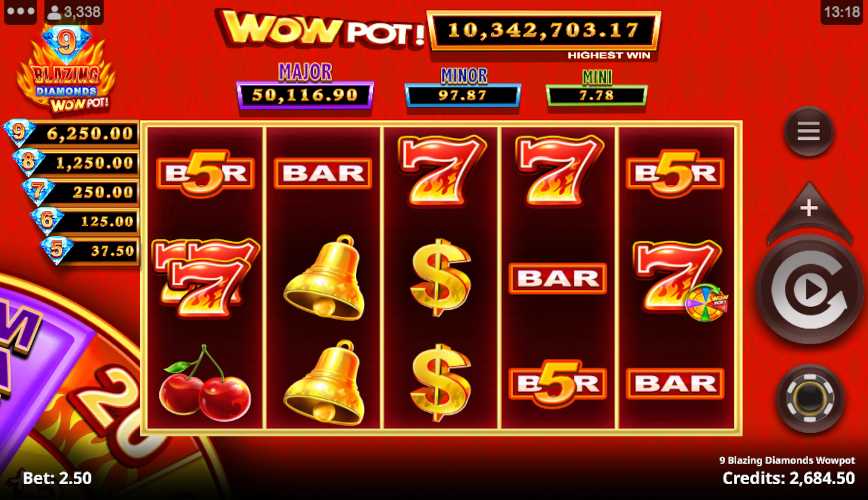 Yes, you’re welcome to play the 9 Blazing Diamonds WOWPOT slot without paying, instantly, with no login.