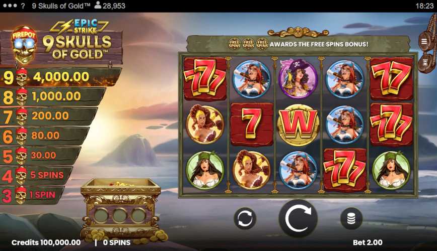 Yes, it's possible to launch the 9 Skulls of Gold slot without paying, instantly, with no login.