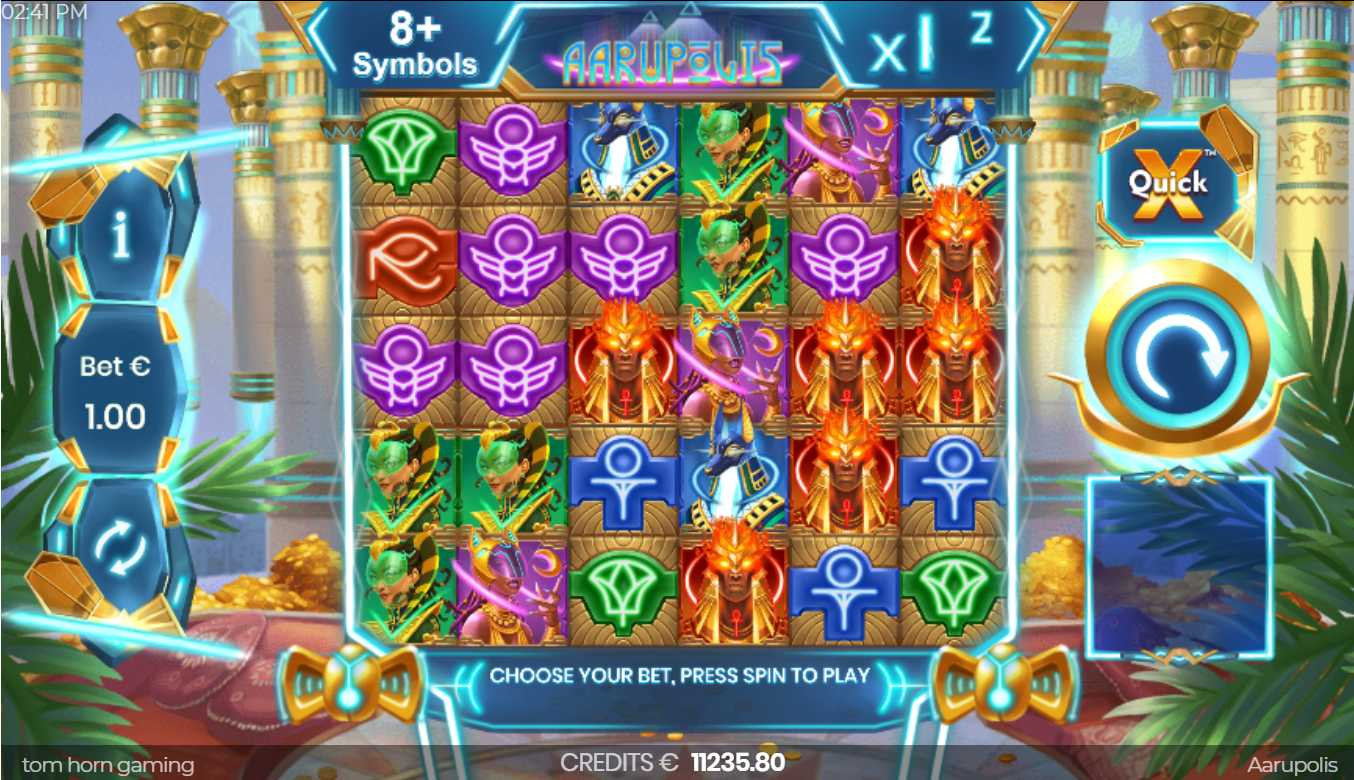 Aarupolis slot by Tom Horn Gaming will immerse you in an unforgettable adventure of two colliding worlds: Ancient Egypt and cosmic civilizations. With its 6x5 layout, this slot will not make you bored, as each winning combination disappears, making space for new symbols cascading down. The Scatter Pays mechanic, rewarding 8 or more identical winning symbols, adds uniqueness to every spin. Meet Expanding Wilds and the Free spins feature, which you can easily buy via XSpin or trigger by landing 4 pyramid Scatter symbols. Each cascade increases your multiplier up to 10x, while each pyramid brings an extra spin. Additionally, XSpin may offer to increase your bet while tripling your chance of landing Scatter symbols, bringing you closer to the coveted Free spins feature. The futuristic Egypt awaits you, promising an exciting experience and substantial rewards with a potential of 1085.3x Max Win Multiplier!