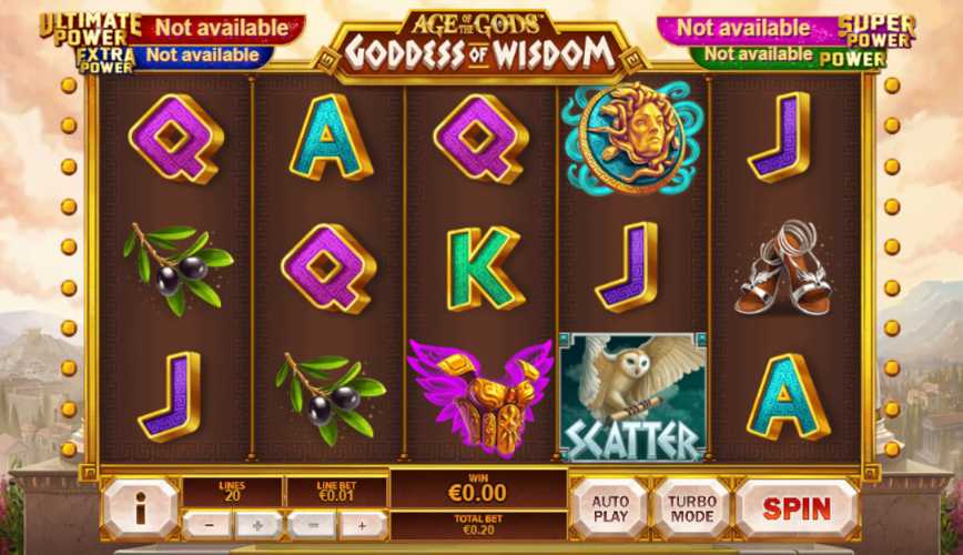 The RTP of Age of the Gods: Goddess of Wisdom is 94.94%, 94.87%. Greater return to player, the better your odds are.