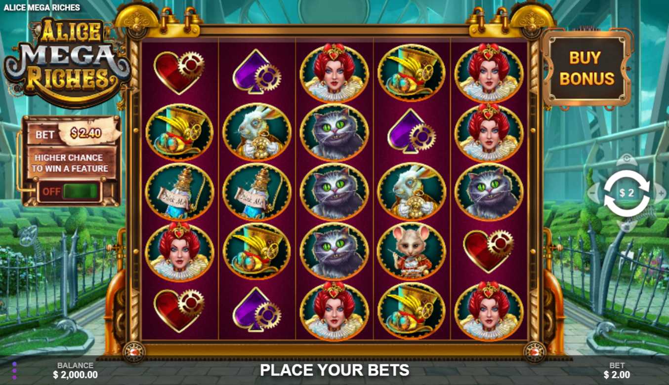 Of course, it's possible to launch the Alice Mega Riches slot for free, no account required.