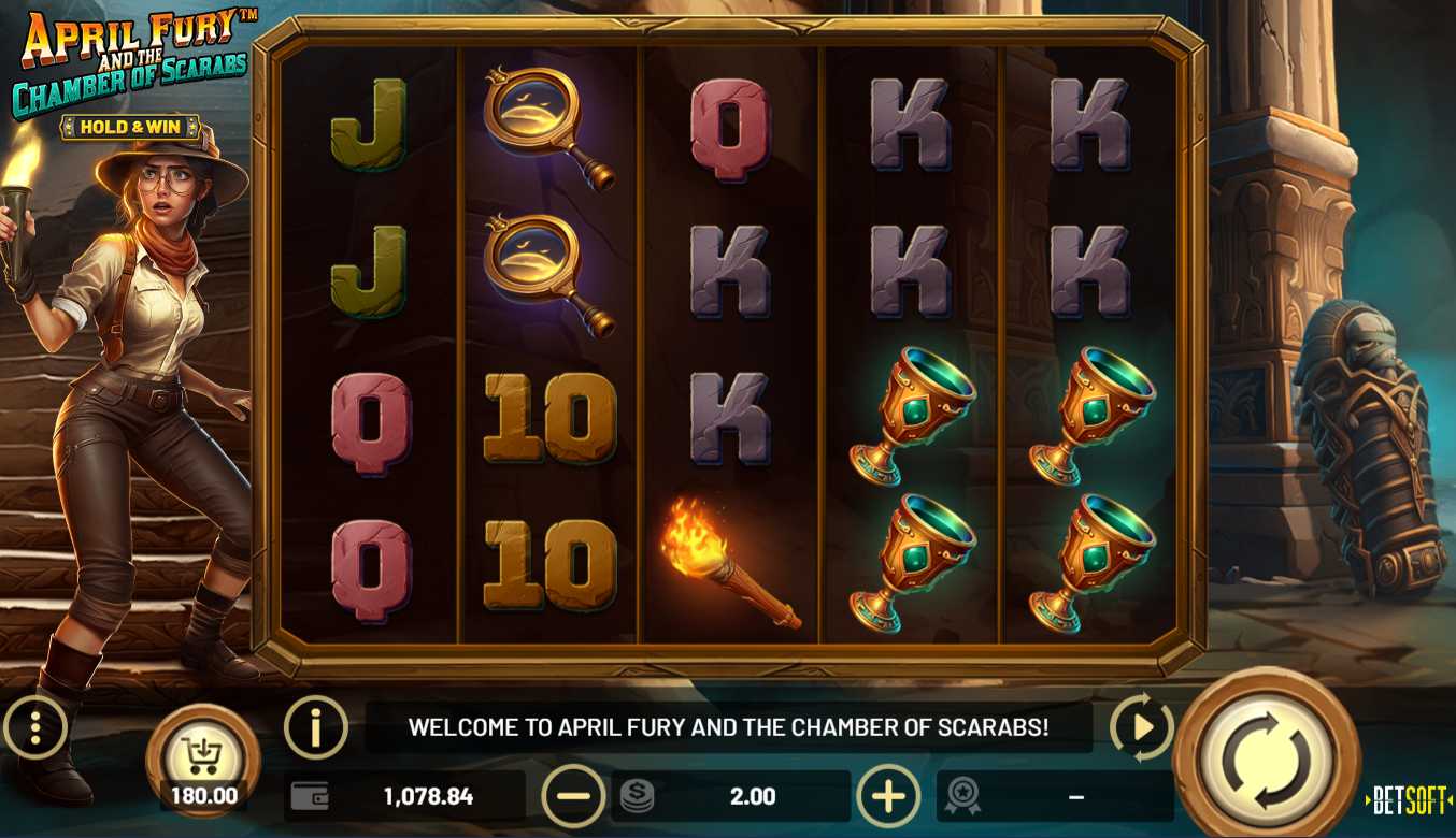 The plot of the video slot is based on the often-used theme of seeking ancient Egyptian pharaohs' treasures. Those are under complete protection of living-dead mummies. So, be aware of that danger, but don't let panic interrupt you from finding a hidden treasure up to x4,000 to the current stake. Also, that adventure is highly pleasing thanks to outstanding-looking graphics and professional-moving animations. And be sure, that isn't just the usual words of praise — due to precise color balance and detail-attention, it seems like April Fury's world lives its own life.
