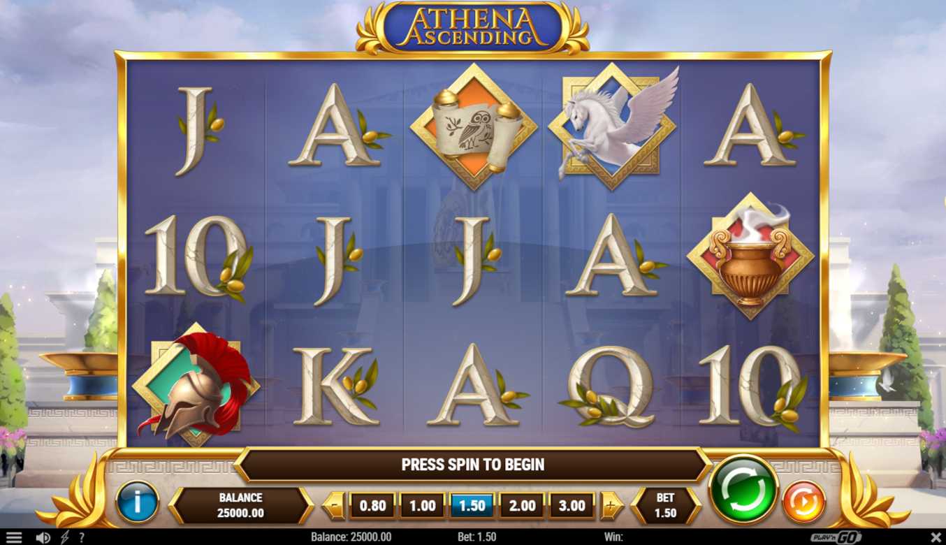 Athena Ascending is a new video slot from Play ‘n Go that was released on December 1, 2022. The setting of the game is ancient Greece, and the player has the opportunity to interact with the powerful goddess Athena, daughter of Zeus. It was believed that Athena was the goddess of warfare, military strategy and now she becomes your beautiful gambling companion. You may get a glimpse of a great white castle in the backdrop of the reels, and some trees create a nice contrast with their lush green color. You can find out if it is worth your time and money to play this wonderful new slot by reading our review of it.