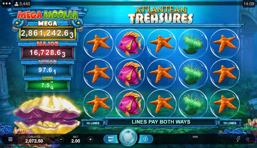 Sure, you’re welcome to play the Atlantean Treasures Mega Moolah slot in demo mode, no registration needed.