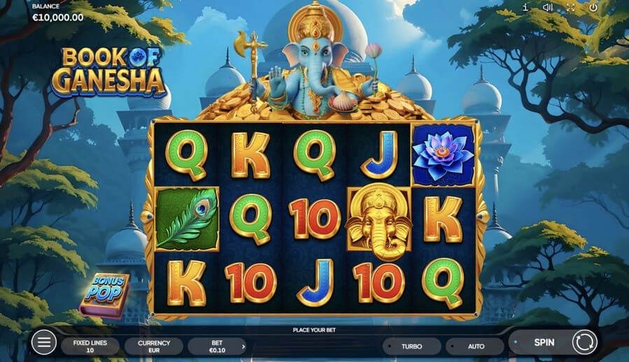 Book of Ganesha follows a 5x3 layout with 10 fixed paylines, placing it firmly in the territory that Book of Ra established nearly two decades ago. Endorphina took this proven structure and gave it an Indian cultural twist, replacing archaeological expeditions with spiritual symbolism and temple aesthetics. The format works because players already understand the rhythm: collect books, trigger free spins, watch symbols expand, and chase those big line hits.
