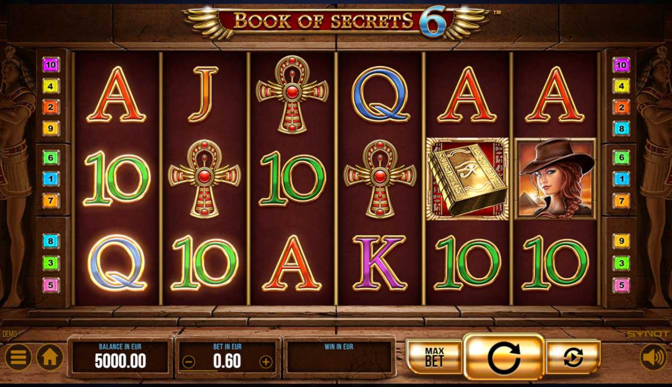 Top-rated place to play Book of Secrets 6 in real-money mode is at an online casino that is: +Licensed, +Trusted and verified, +Transparent, +Supports fast withdrawals, +Has bonuses and promotions, and +Offers live customer care.