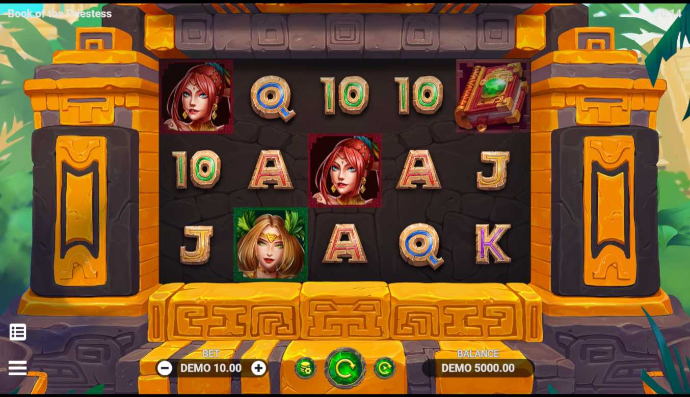 At first glance at the game, it seems that this is something related to such a fairly standard topic as the ancient civilizations of middle and south America. But Book of the Priestess has its own plot and vibe and is about a lost temple somewhere in the jungle and clearly associated with wealth. The graphics look cartoony but everything is drawn well and looks good. The style associated with ancient tombs, temples and symbols can be traced. Highly paid symbols are represented by girls, possibly performing the role of priestesses of various forces of nature. The soundtrack sounds pretty cool and modern and it looks like they did a really good job.
