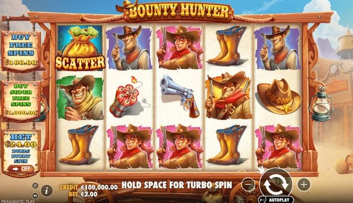 Bounty Hunter is a New Slot from Pragmatic Play that mixes the excitement of collecting solid winnings with the adrenaline-pumped ambiance of classic Wild West revolver duels. Cash prizes up to x100 and win multipliers up to x100 make entertainment equally joyful and profitable. In addition, there are also two types of Free Spins, including the super bonus round. As a cherry on top, playing this slot, you can catch up to a fantastic amount that is 10,000 times your bet.
