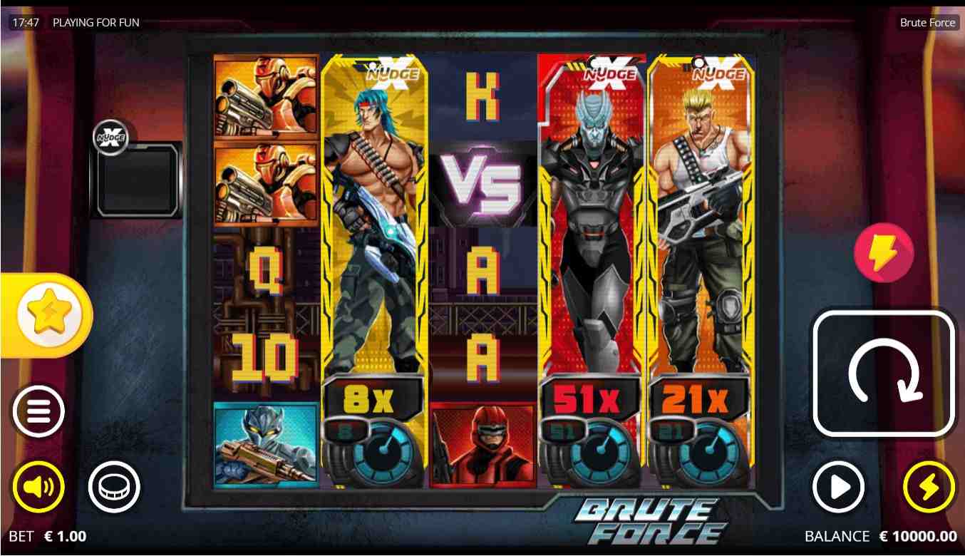 You can access Brute Force Free Demo directly through verified casino partners. The free version includes all features - xNudge Wilds, both bonus types, and even the xBet function. This comprehensive access allows complete mechanical understanding before committing real funds.