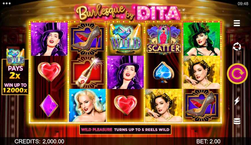 The RTP of Burlesque by Dita™ is 96.8%. Greater return to player, the more favorable it is for players.