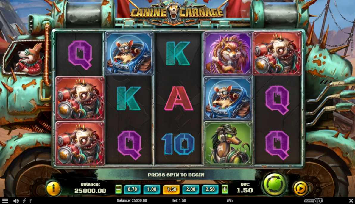 The image of a dystopian world in most online slots lacks the expected level of dystopia and despair. However, NoLimit City's creations stand out with their gripping and chilling depiction of the aftermath of a catastrophic event. In contrast, Play'n Go's Canine Carnage is a unique online slot that offers a fresh take on the genre by blending various elements from popular releases. The game's immersive and fast-paced gameplay is accompanied by a futuristic theme that is sure to captivate players. One of the key features of Canine Carnage is the introduction of cyberpunk dogs that are both intimidating and adorable at the same time. However, the real highlight of the game is the Bone Spins feature, which adds an innovative twist to the traditional hold & win feature. Unlike other games where the spin counter resets after a win, in this game it is not the case, but it is compensated by 3 different modifiers. Read our review to be ready for all the intricacies this slot has to offer.