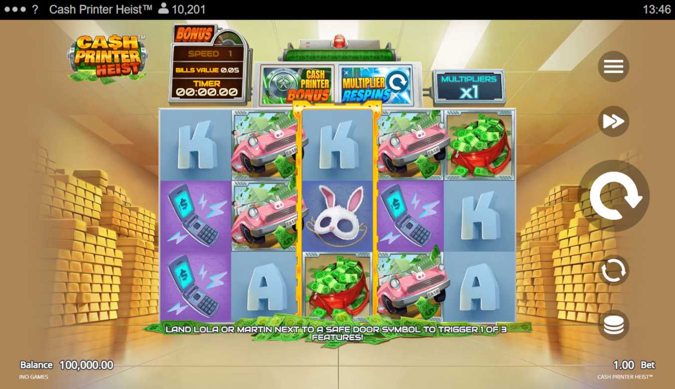 Most reliable place to play Cash Printer Heist for real money is at an online casino that is: +Licensed, +Trusted and verified, +Offers fair terms, +Supports fast withdrawals, +Has bonuses and promotions, and +Provides 24/7 support.