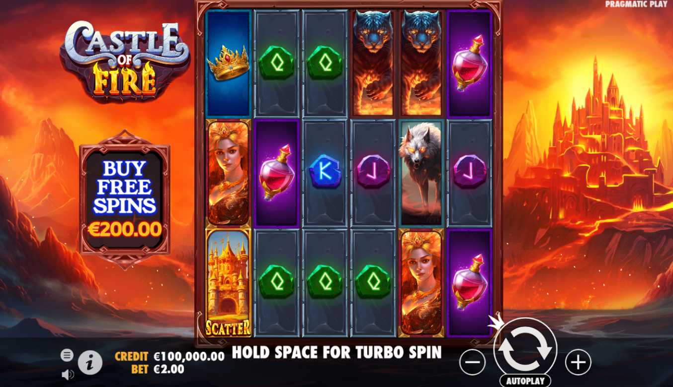 The RTP of Castle of Fire is 96.01%, 95.03%, 93.99%. The higher the RTP, the more potential you have for returns.