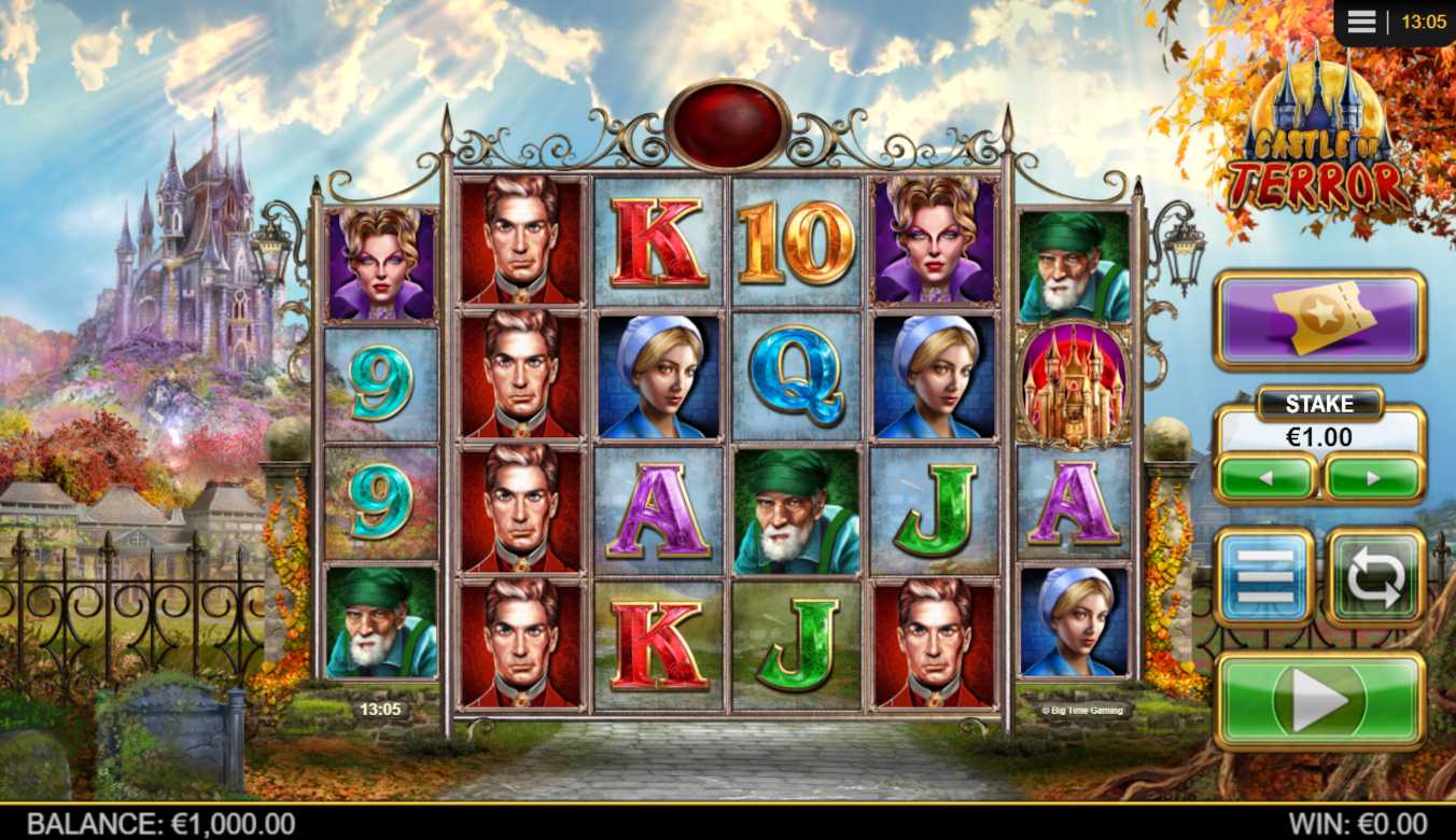 In the Big Time Gaming video slot, Castle of Terror, we travel to the countryside to find an enchanted palace. The palace is strikingly similar to the German Neuschwanstein castle, which served as inspiration for Disney in designing their emblem. However, this castle is the antithesis of Disney's fairytale and harmonious one, with a frightful ambiance akin to that previously encountered in another adventure games with a castle setting. Despite the scary theme, the setting is very lovely, and the backdrop of the game features an endearing and intricate scenery. This slot machine has a ton of interesting features that can result in enormous gains of up to 61,720x the stake. Let's take a look at this slot and discover what to anticipate seeing while it is being spun. Read our review to be prepared for all the nuances this game has to offer!