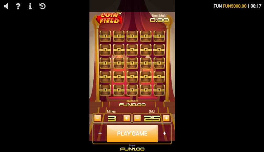 The RTP of Coin Field is 97%, 95%, 93%, 88%. Greater return to player, the better your odds are.