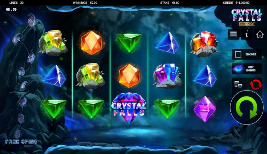 The Crystal Falls symbol awards 25x your bet for 5 of a kind.