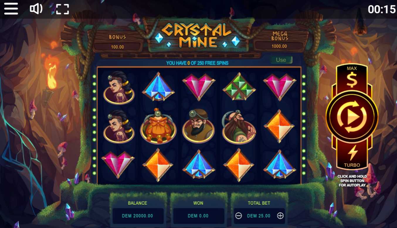 Embark on a thrilling adventure in the depths of a mythical forest with Crystal Mine. This 5x3 slot game has 25 paylines and offers a very volatile gameplay due to its Extreme Volatility, but the x5770 max potential mitigates the risks a bit. Dive into the treasure-filled mine guarded by powerful dwarf miners and uncover their greatest riches. With symbols including crystals, dwarf miners, a Wild symbol, and a dice symbol, the game immerses you in its enchanting setting.