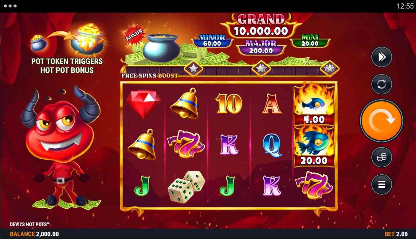 Most reliable place to play Devil's Hot Pots in real-money mode is at an online casino that is: +Regulated, +Safe and secure, +Transparent, +Pays out quickly, +Gives good rewards, and +Provides 24/7 support.