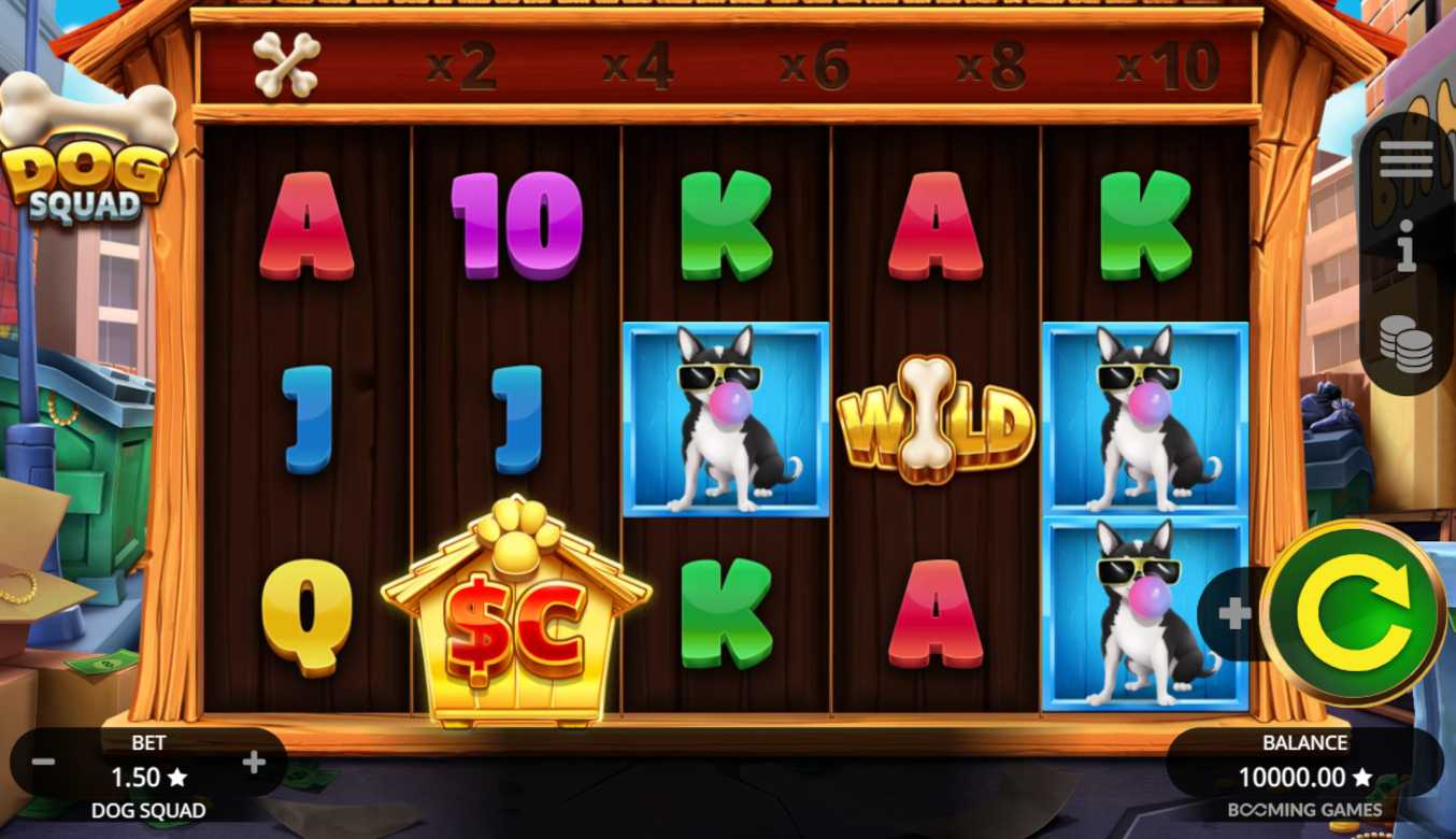Top-rated place to play Dog Squad with cash stakes is at an online casino that is: +Regulated, +Safe and secure, +Transparent, +Pays out quickly, +Has bonuses and promotions, and +Provides 24/7 support.