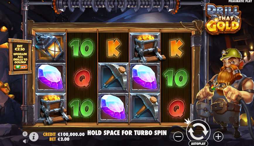 You can play this slot on our site without needing to register or make a deposit. Scroll up this page and use the corresponding button to start the Drill That Gold Free Demo. It functions as a convenient and easy way to test the game without risking your own money. Moreover, given that the free slot is no different from the usual version, demo mode serves as an excellent tool for developing your winning strategy, including determining the best-suited balance management and optimal bet size.