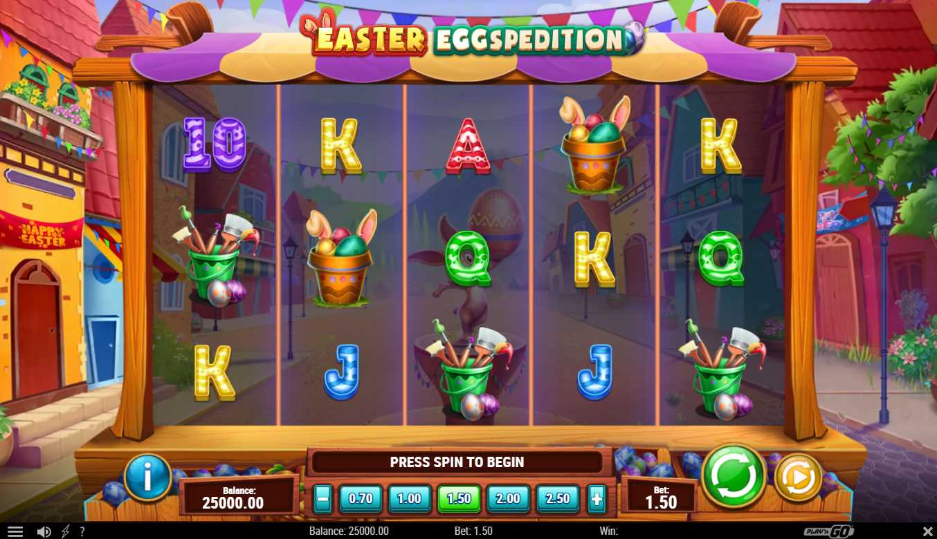 In the Bonus Game, the Super Bunny character appears only within the framed right-positioned tile. Just after it comes up, the currently accumulated Cash Pot prize is handed to the player. But the Cash Pot value doesn't reset to zero upon that, continuing growth thanks to the new prizes off Easter Eggs that fall on the playfield along the following re-spins. If the Scatter and Bunny land at once, the cash prize is credited to the Cash Pot first, after which the Cash Pot sum is added to the current Bonus Game win amount.