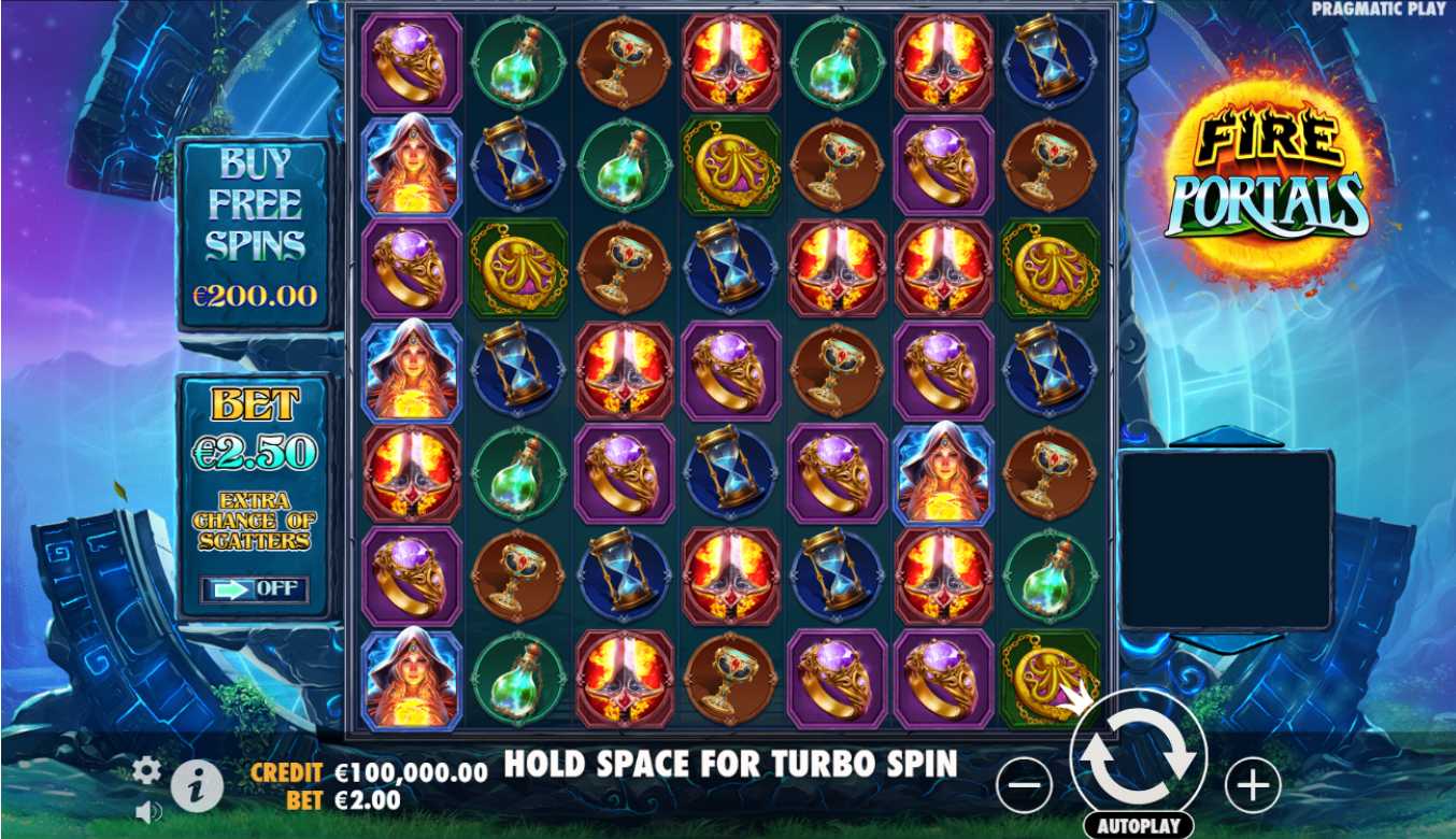 The RTP of Fire Portals is 96.06%, 95.04%, 94.08%. Greater return to player, the more potential you have for returns.