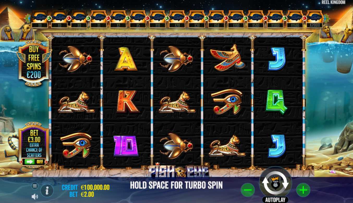 Reel Kingdom's Fish Eye is an online slot machine that transports players to old Egypt. This time, we take a different approach and plunge into the Nile, where we can find treasures worth up to 10,000 times our stake. It's a gameplay experience that expands upon a theme we've already seen in some of their earlier works, like Bigger Bass Bonanza. We have a few fantastic features in this Egyptian gaming journey to aid us in our search for the riches hidden at the bottom of the Nile. Money Symbol, Free Spins, Ante Bet, and Bonus Buy are the highlights.