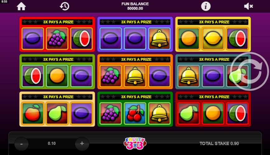 The RTP of Fruity 3x3 is 95%. The higher the RTP, the more favorable it is for players.