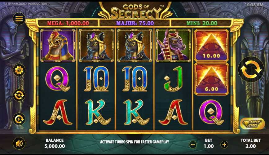 The RTP of Gods of Secrecy is 96.36%. Greater return to player, the better your odds are.