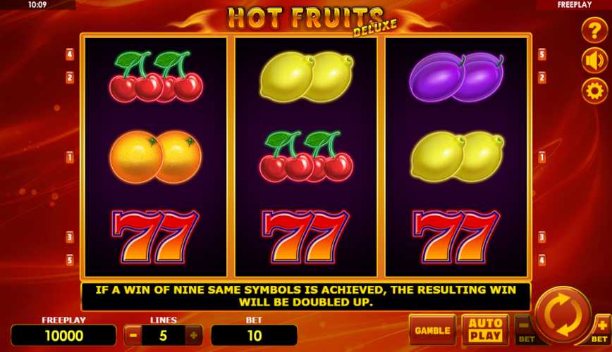 The RTP of Hot Fruits Deluxe is 97.25%. Greater return to player, the better your odds are.