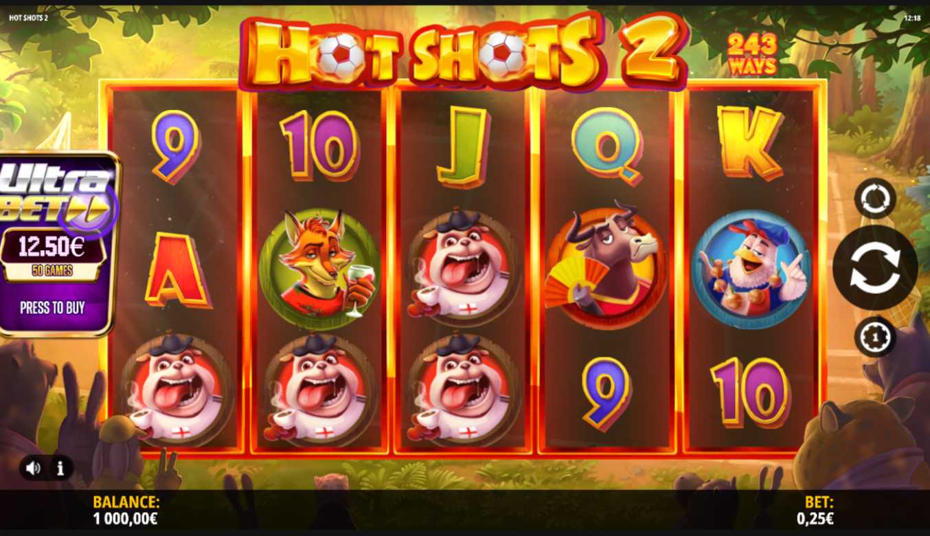 Picture this: a football pitch surrounded by jungle trees, where cartoon animals compete for glory and massive payouts reaching 12,150x your stake. Hot Shots 2 from iSoftBet delivers exactly this wild combination, blending sports excitement with animal charm in a high-volatility adventure that promises both thrills and substantial rewards. The vibrant graphics showcase a German Shepherd goalkeeper, French rooster midfielder, and British bulldog striker, all animated with playful energy against a backdrop of cheerful stadium atmosphere and upbeat soundtrack that keeps the momentum high throughout your gaming session.