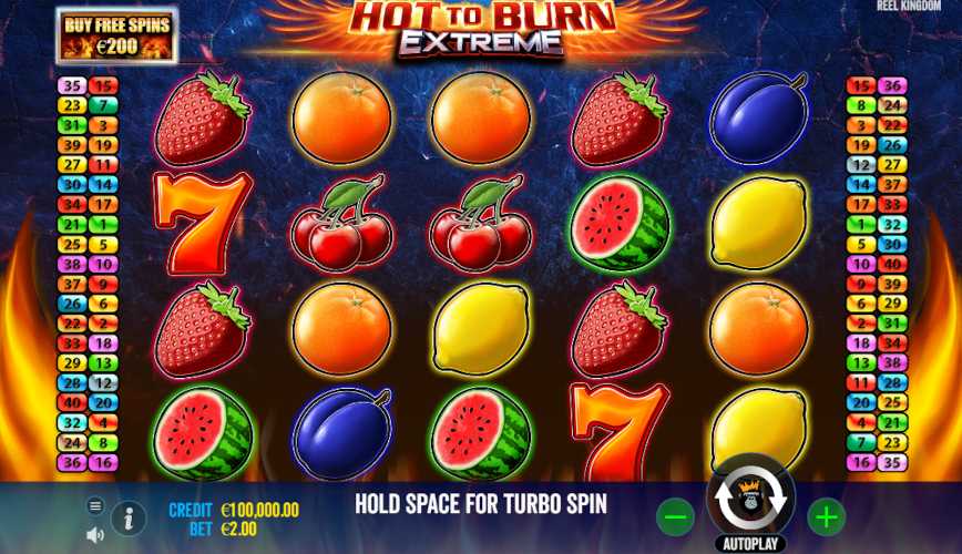 The RTP of Hot to Burn Extreme is 96.65%, 95.62%, 94.5%. Greater return to player, the more potential you have for returns.