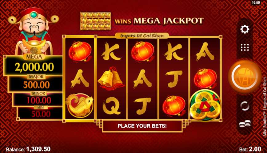 Top-rated place to play Ingots of Cai Shen in real-money mode is at an online casino that is: +Regulated, +Safe and secure, +Offers fair terms, +Pays out quickly, +Gives good rewards, and +Provides 24/7 support.