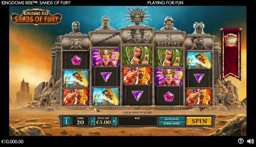 Of course, it's possible to launch the Kingdoms Rise: Sands of Fury slot in demo mode, instantly, with no login.
