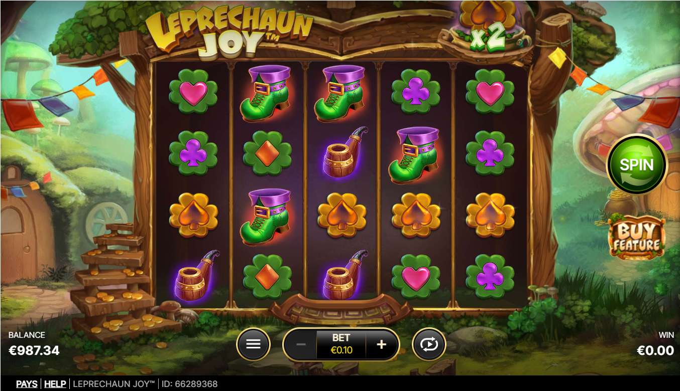 Embark on a delightful journey into the heart of Ireland with Leprechaun Joy by NetEnt, a charming and relaxing slot set in Irish folklore, where a familiar leprechaun village holds incredible riches. With a 5x4 layout and 25 ways to win, set out to discover the potential of up to a 5255x Max Win Multiplier, with bets ranging from €0.1 to €200 per spin, catering to a wide audience of gambling enthusiasts. Win multipliers with symbol type wins that appear above the reels and trigger Free Spins, by landing three Scatter symbols, where along with re-triggers, the leprechaun symbol can increase your multiplier for the duration of the spins. You can also take advantage of the Bonus Purchase feature for quick access to bonuses. Begin your adventure now and immerse yourself into a world of Irish charm and fortune.