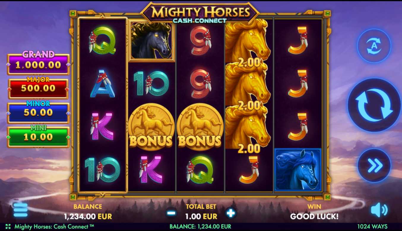 Of course, you can try the Mighty Horses: Cash Connect™ slot in demo mode, no registration needed.