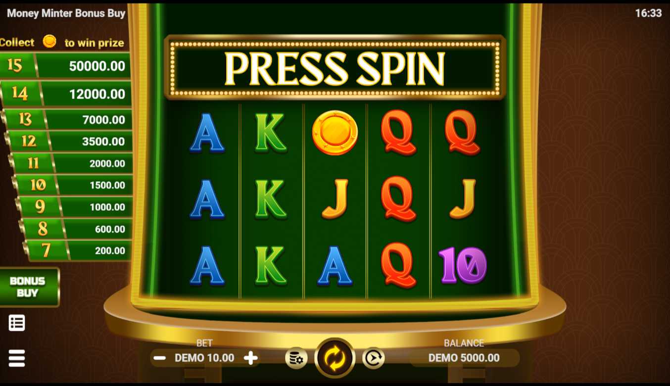 Money Mintor Respin. In case 3 or more Scatters are shown in any place on the game field activate the feature. +1 Spin symbol can be shown only during the feature and give one more spin. The feature starts with 3 Respins and Scatters that activated the feature remain in their places. During the feature, only +1 Spin, Scatter and blank symbols are shown on the game field. Any Scatter that is shown on the game field become sticky. In case the whole game field is full or the spins are over the feature ends. From 3 to 15 symbols on the game, the field gives the progressive prize from 1 to 5000 times the bet.