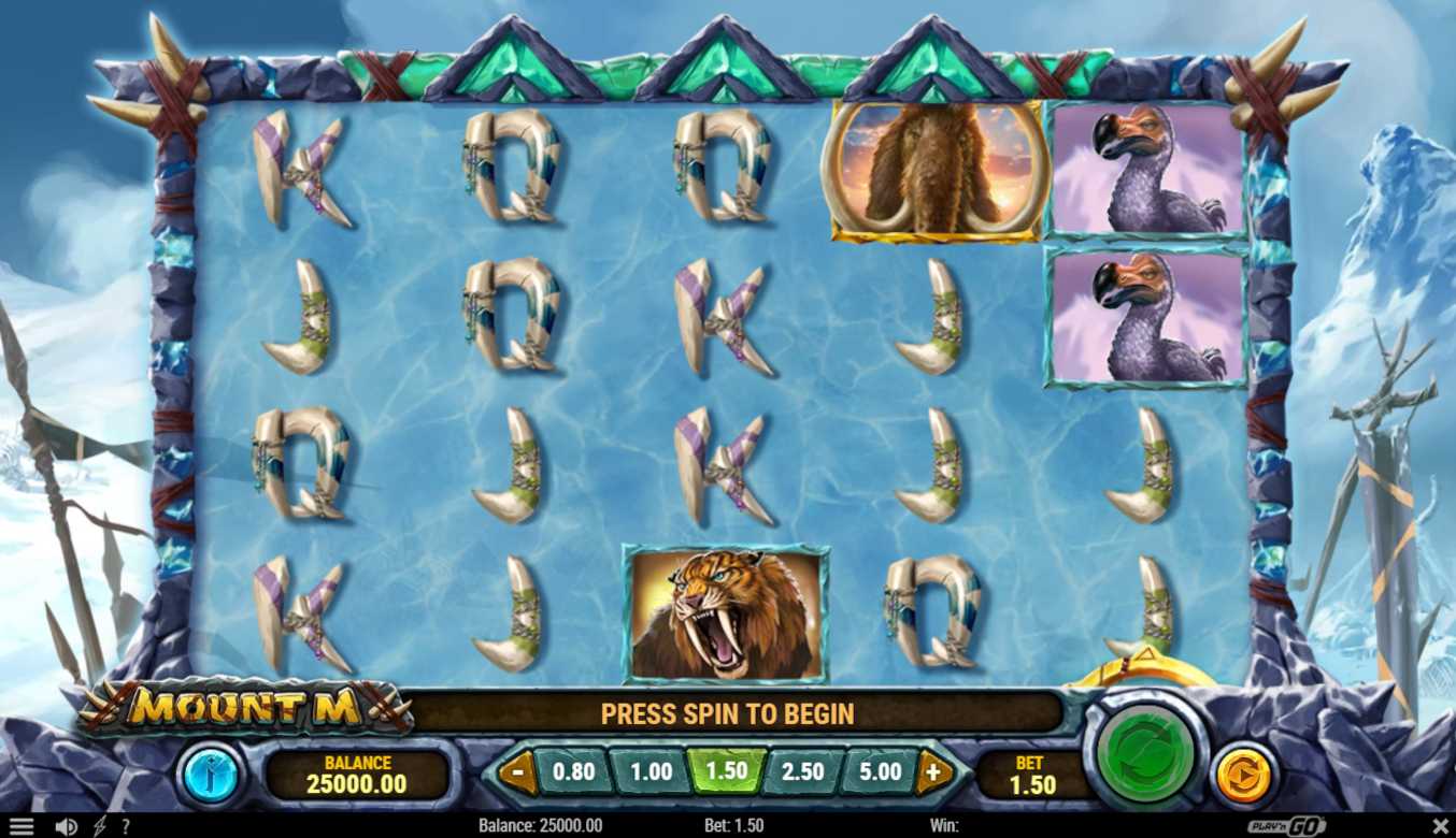Mount M is a new video slot from Play ‘N Go that was released on September 8, 2022. This slot is set in a desolate winter terrain that is covered with snow and ice. The mammoths, tigers with saber teeth, and other creatures with thick hides are doing all they can to increase your chances of winning big. Wild symbols are equipped with orbs that have the potential to extend the center reels to a height of eight rows, thus providing the player with 8192 different possibilities to win. The animal symbols will also be upgraded as the reels extend, which will increase the player's chances of winning significant sums of money. There are no living people on the mountain, but there are signs of their presence in the form of spears that have been left behind and a wooden cross that has a banner attached to it. The soundtrack is ominous and sluggish, while the clouds in the backdrop are moving from left to right. It is time to don all of your garments so that you may go back in time to Mount M and battle the bitter cold with the native creatures there. Read our review to decide whether it is worth your time and money playing it.