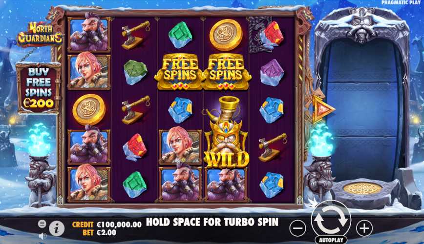 The North Guardians slot offers a Bonus Buy option (available in eligible jurisdictions) that allows instant access to Free Spins for 100x the current bet. This feature appeals to players who prefer guaranteed bonus rounds over waiting for natural triggers.